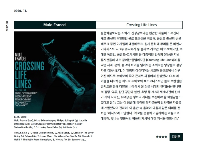 재즈피플 2020년 11월호 리뷰 Mulofrancel - crossing life lines 2020-12-31