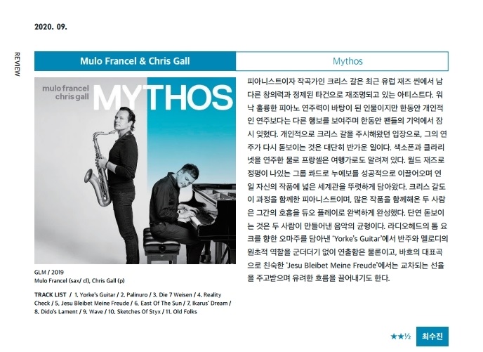 재즈피플 2020년 9월호 리뷰 Mulofrancel - mythos 2020-12-31