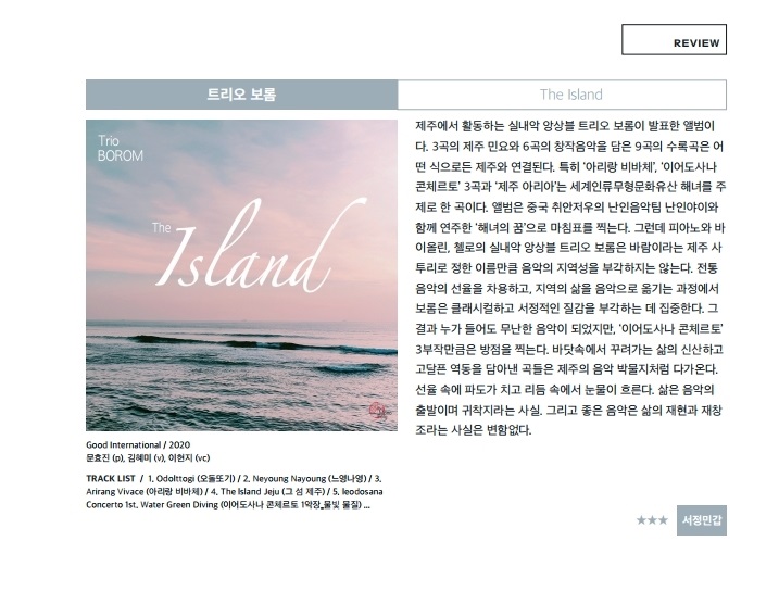 재즈피플 2020년 10월호 리뷰 Trio borom - the island 2020-12-31