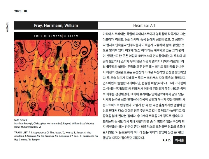 재즈피플 2020년 10월호 리뷰 Matthias prey - Heart ear art 2020-12-31