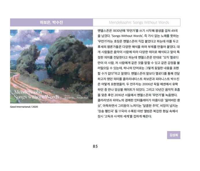 재즈피플 2020년 11월호 리뷰 Ha bo eun - Mendels sohn 2020-12-31