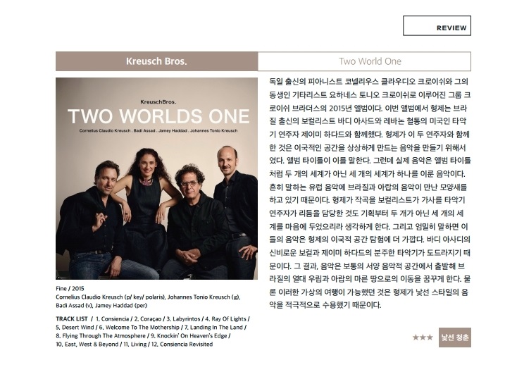 재즈피플 2020년 10월호 리뷰 Kreuschbros - Two world sone 2020-12-31