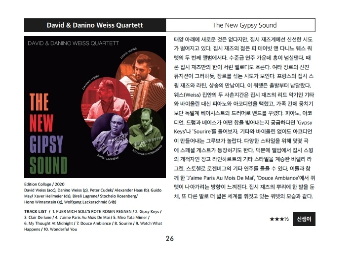 재즈피플 2020년 12월호 리뷰 David & Danino weiss quartett - The new gypsys ound 2020-12-31