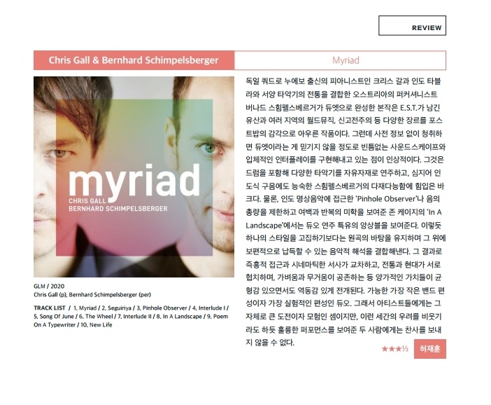 재즈피플 2020년 12월호 리뷰 Chrisgall - Myriad 2020-12-31