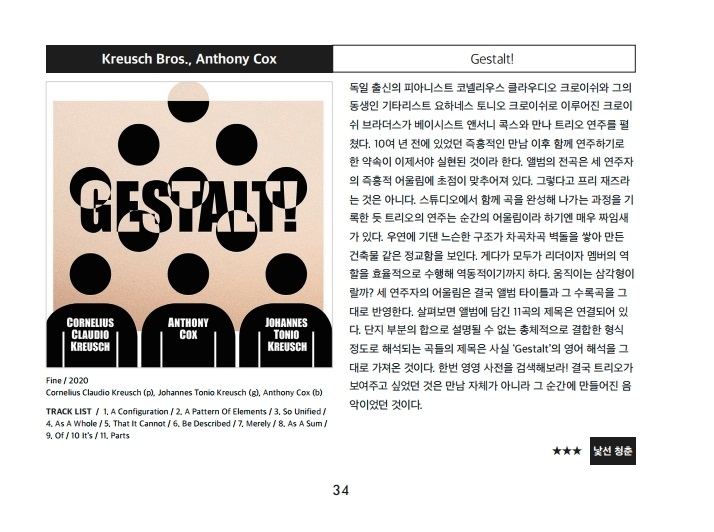 재즈피플 2020년 10월호 리뷰 Kreuschbros - Gestalt 2020-12-31