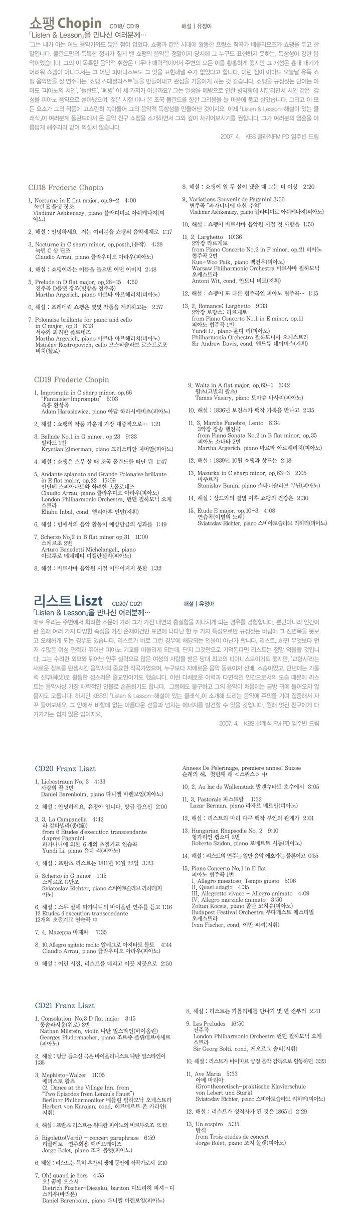 약 40페이지에 이르는 한글 해설과 클래식 용어집 수록.
